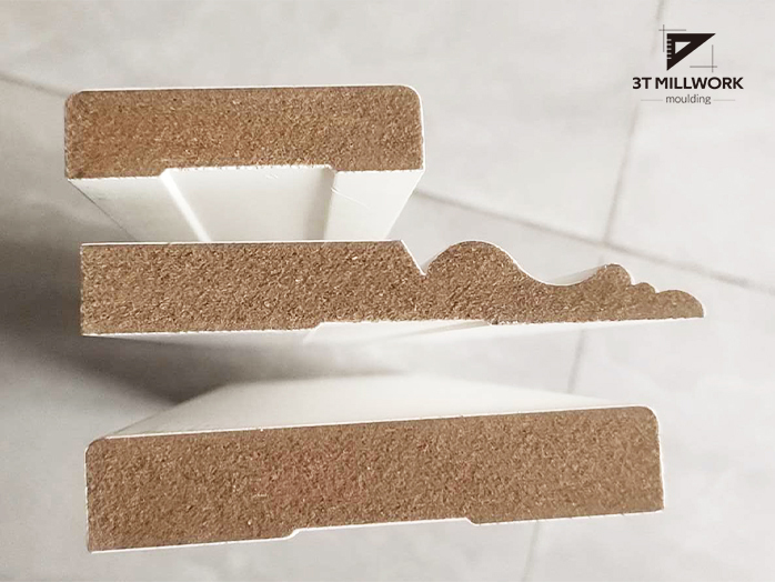 MDF material is the common material which the density is made from 600kg/CBM to 800kg/CBM, this density is heavy for longer moulding but suitable for door jamb or window frame with the shorter size, the nail holding ability is good and you do not worry about anything for installing baseboard corners in your places.