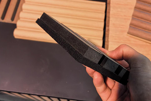 Our MDF for the inside corner block is with the density of 580kg/m3 and it has the excellent anti-bending ability, even the moulding length is 16ft/ 17ft or longer, it will not easy to break. Becaue the fiber of our MDF board raw material is relatively long, so the board has a very strong nail-holding force, which can improve the installation efficiency during molding installation.