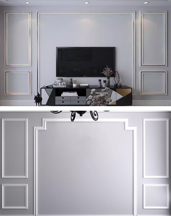 Panel moulding do have a moulding with shapes on it, you can use wall panels to design different areas and shapes at will according to your wall size. It is easy to install and can be completed by one person, the wood astragal molding can be designed with different thickness.